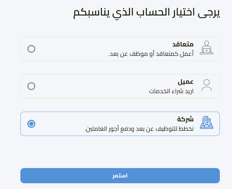 للتسجيل في منصة فورلانسو بصفة شركة والتعاقد مع موظفين عن بُعد بشكل احترافي، اتبع الخطوات التالية: