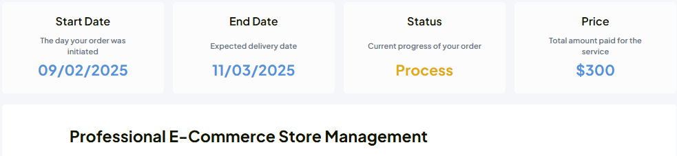 - After the client accepts the service and provides a review, the order will be marked as completed.