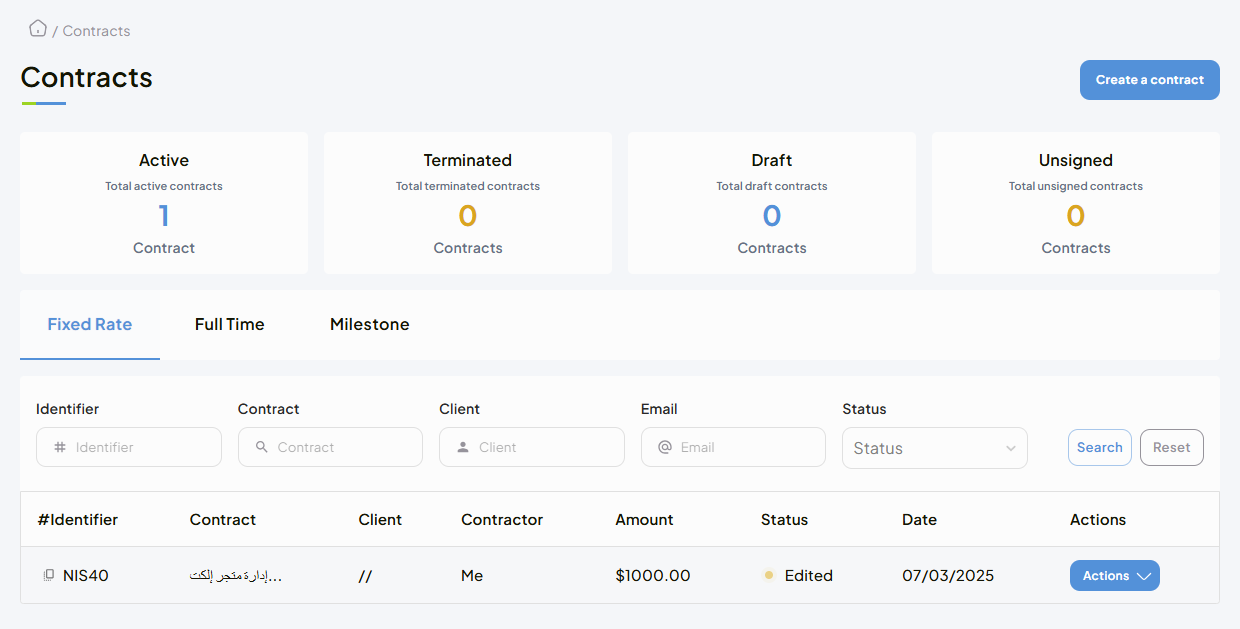 - Click on "Create Contract", then select "Fixed Price".