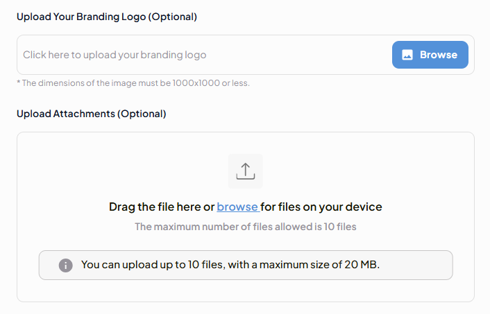 - Attach relevant files (up to 10 files, each with a maximum size of 20MB).