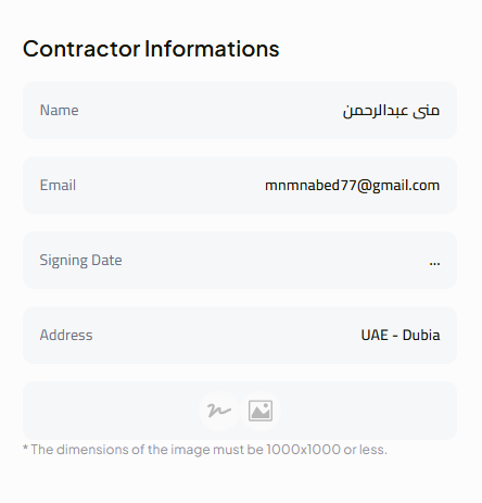 - Select the contract language (Arabic or English).