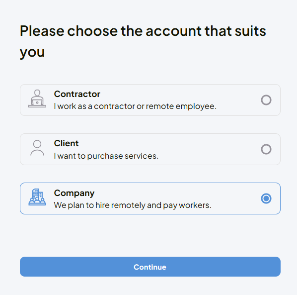 - Select "Company" and click "Continue."