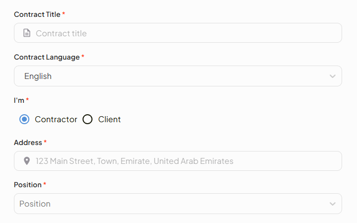 - Contract Language: Choose your preferred language (Arabic or English).