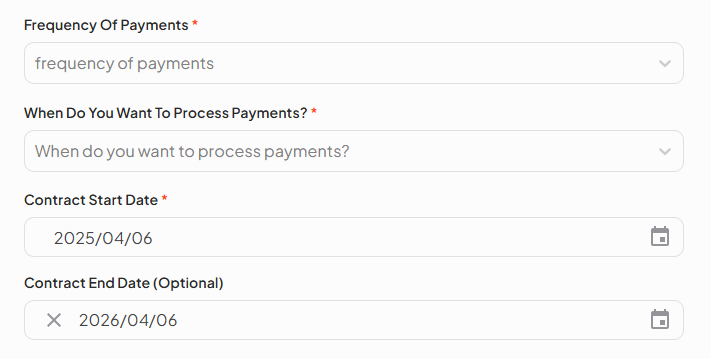 - The end date is optional—you can specify it or leave it open-ended based on the agreement.
